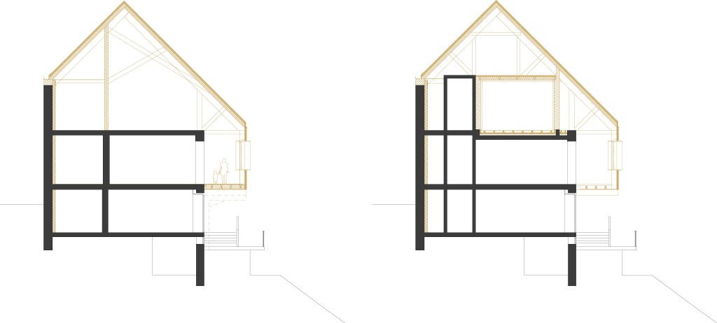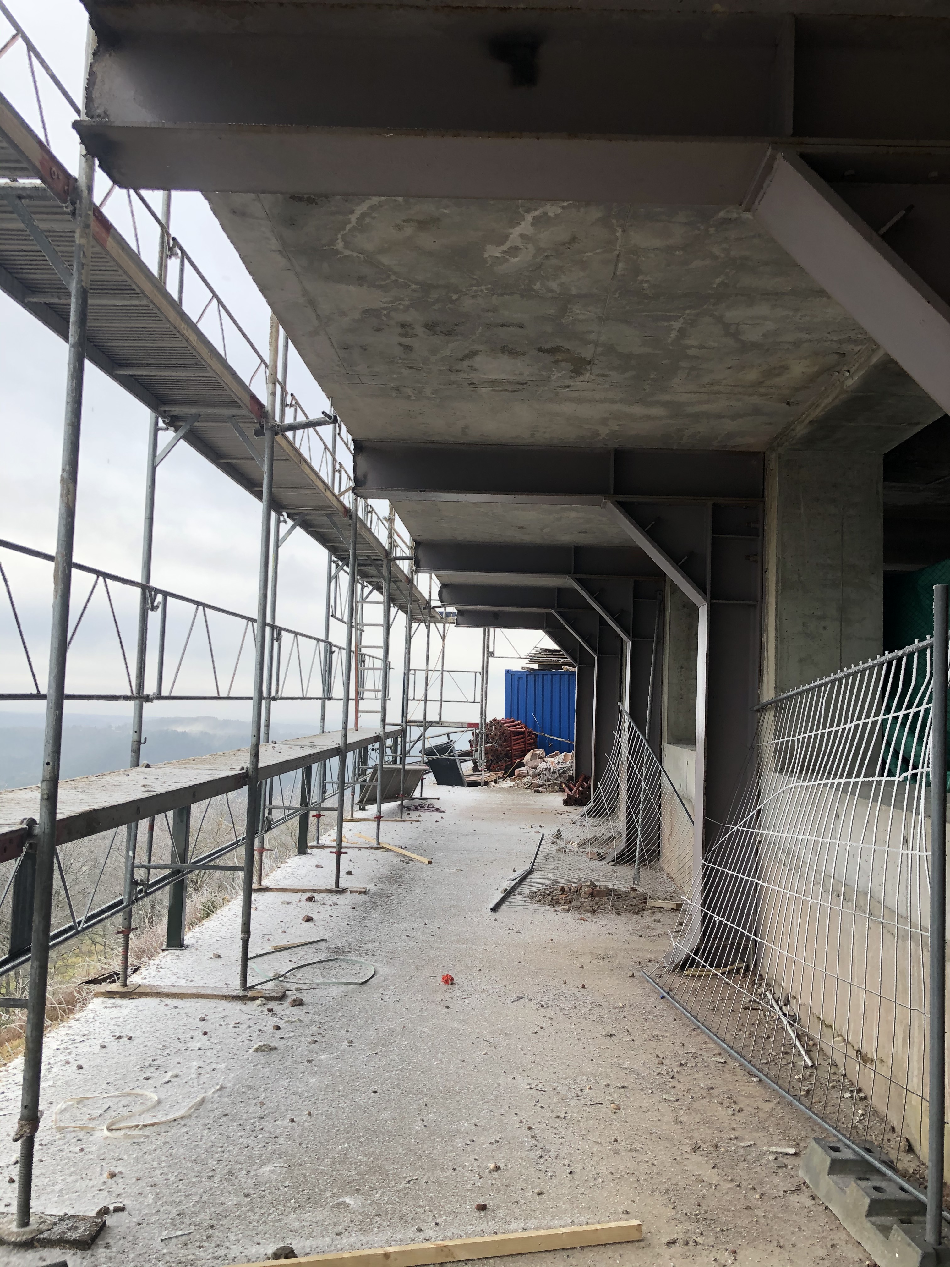 Suite à un incendie, le restaurant du Rocher a été détruit. Le projet met en valeur le site naturel du Rocher de Dabo en rénovant le restaurant. Le bâtiment, épuré de ses extensions, est revêtu de bois, tandis que sa façade en grès rose est conservée. Les principes structurels sont simples, des fermes « ciseaux » et des murs ossatures bois s’appuient sur la structure existante en pierre renforcée, là où cela est nécessaire, par du béton armé.