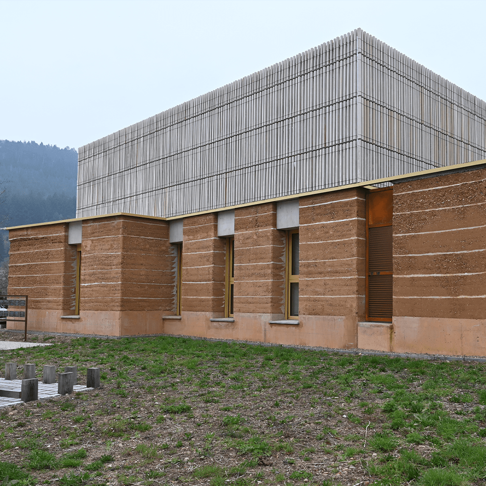 | Façade en pisé d’un immeuble de logement